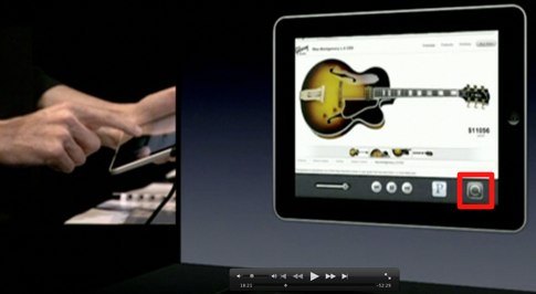 Anlass für Diskussionen: Der iOS-4.2-Ausblick von Steve Jobs am iPad zeigt in der Multitasking-Leiste einen (Software-)Button zum Verriegeln der Bildschirmdrehung. Da das iPad in seiner jetzigen Form jedoch einen seitlichen Hardware-Knopf für diese Funktion mitbringt, liegt Spekulationspotenzial nicht fern. Höchstwahrscheinlich ist der (frühe) Preview-Build jedoch einfach nur Schuld…
