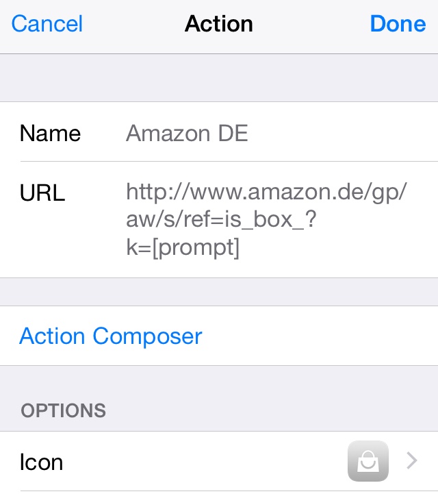 - Minimal erweitert: die iPhoneBlog-Suche und das Nachschlagen auf Duden.de. Hier habe ich mir den URL-Stamm geschnappt und lasse LCP Text anhängen, der vorher über ein Textfeld eingegeben wird. Je nach Webseite muss man dort einfach mal schauen wo der Suchbegriff eingefügt wird und sich dann die URL-Konstruktion stricken.